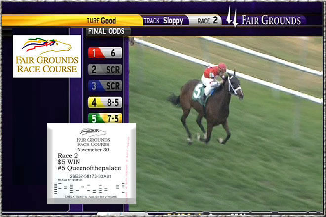 I kicked off the second full week of racing in New Orleans with two wins from four selections! The first bet on the selection sheet came in the second and it was a Fair Grounds 40% Club play - Brad Cox with a turf router. I have to admit that the fact that I've played this angle several times and only have cashed a single ticket did have an impact as I only invested the minimum amount. Typically in every other "Handicapping Project" where I've purchased a Jim Mazur book to use the 40% Club, any Club play is an automatic minimum double investment. But this was an unusual case. As I mentioned in the analysis it was a "no win" scenario because of Queenofthepalace were to win and you did NOT have it, you'd say "I had the 40% Club angle right in front of me - why buy the book if you're not going to use it!" Conversely, if she went down as the short-priced favorite, and she seemed destined to be a low number for sure, you could say, "....what was I thinking at a short price to back a runner that's 1-for-17 over the last two years AND is plunging in price today...." Still, it IS a "club play" and 'Queen was first off the claim, a 36% winning move while getting jockey Jose Valdivia who has won at a whopping 45% for Cox. It was a short field of four after several scratches and 'Queen got the ideal trip by sitting just off the flank of the front runner through pedestrian fractions. When the other favorite made her move as they turned for home Queenofthepalace had too much left in the tank and she scored decisively as the 7/5 favorite.